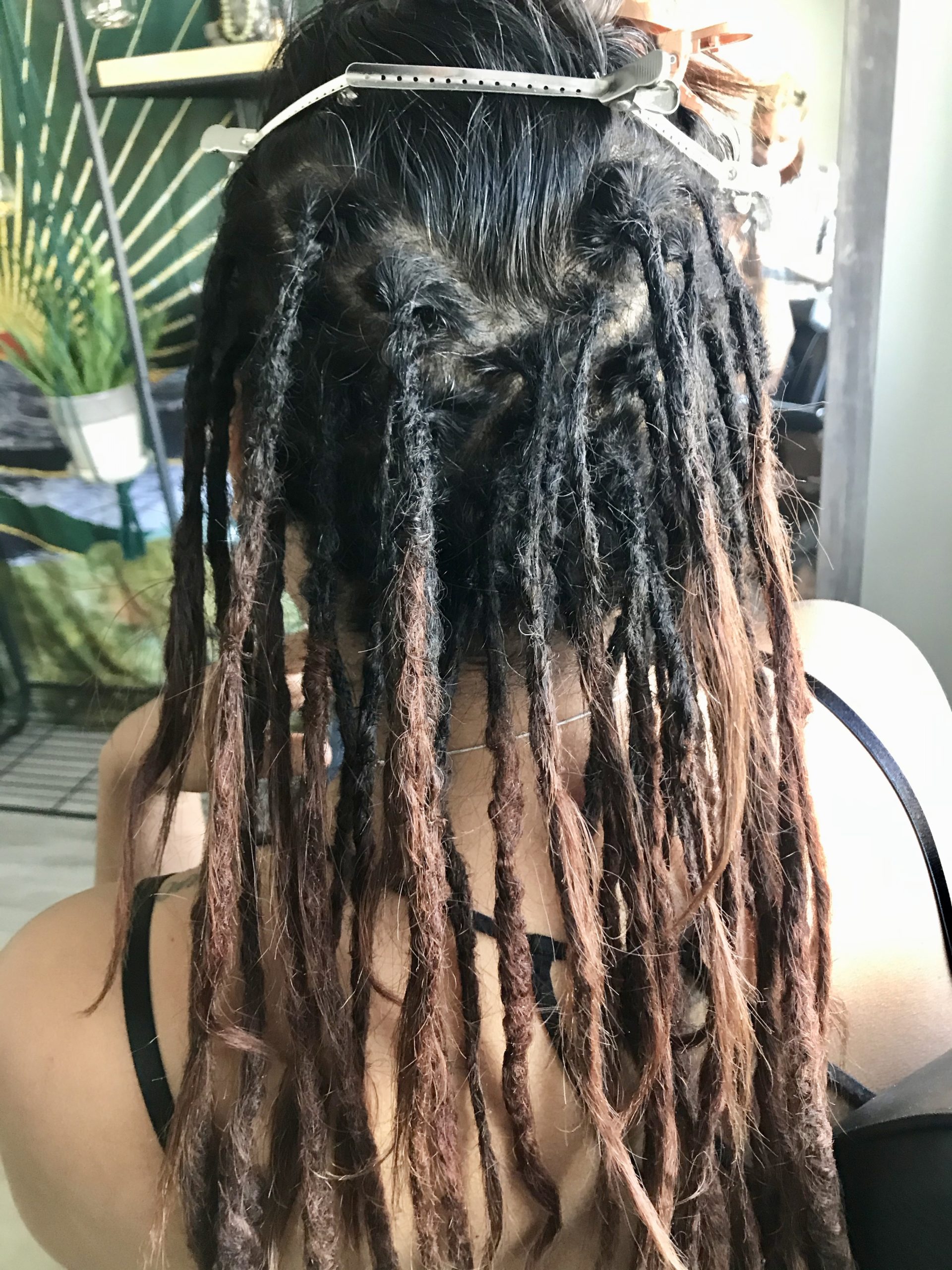 We provide a pleasurable experience offering a variety of natural hair care services at an affordable cost. Need to reattach a few dreads as well as add human hair crochet style into each dread.